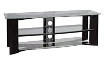 Bell'O AVS2763HG glass, this design will accommodate most Flat Panel, DLP, or LCD Projection TVs up to 63", or most Direct View TVs, plus up to 6 or more audio video components and a center channel speaker Versatile Audio Video Furniture System has two opposing arcs and stately legs to create a unique and contemporary home theater system There is an integrated