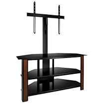 Bell'O TPC2127 features black tempered safety glass shelves and a High Gloss Black scratch resistant powder-coated metal frame It can accommodate most Flat Panel TVs up to 55" or 125 lbs