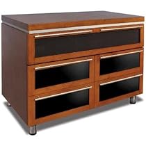 It is available in a highly polished Cherry finish and is shipped assembled The doors have dark tempered safety glass to hide at least 6 audio/video components while allowing